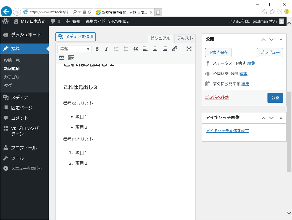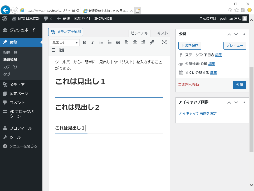 記事の確定、投稿